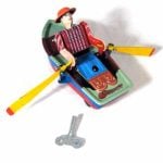 The classic shiny silver Robby the Robot runs on pencil power! When you sharpen your pencil you are also winding him for a walk! Place your wooden pencil in Robby’s hidden jet pack and his clear dome head fills with pencil shavings as you wind him up. He can also hold your pencil with his red arms, when you aren’t using it. If you don’t have any pencils, you can wind him with his key. He is inspired by the famous original Robby the Robot from the classic 1950’s movie Forbidden Planet.